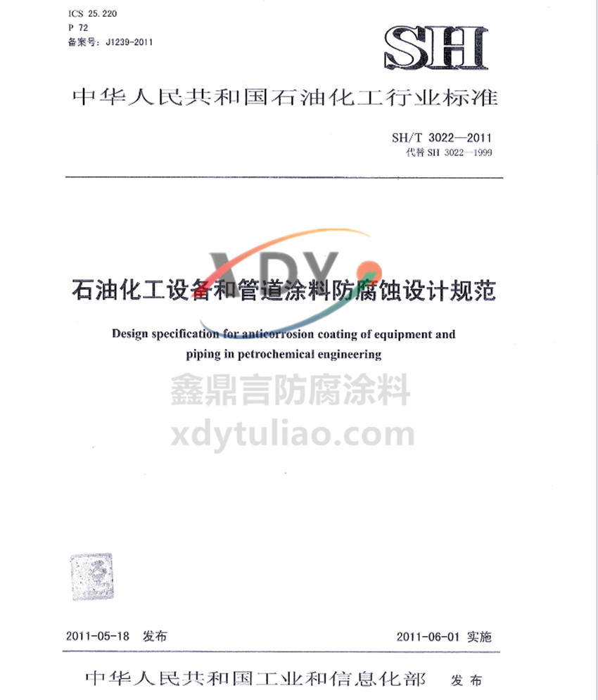 石化設備管道涂料防腐配套標準SH/T 3022-2011