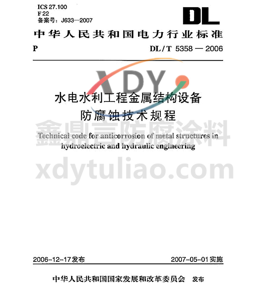 DL/T 5358-2006水電水利工程金屬結構大氣中的防腐配套涂層系統(tǒng)標準
